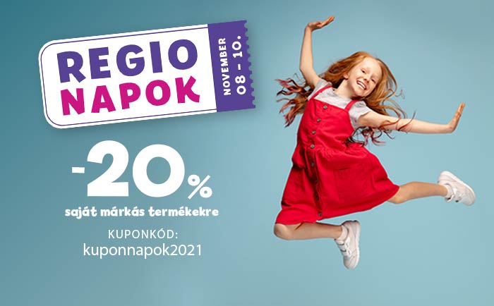 Az ajánlat kizárólag 2021.11.08 – 2021.11.10-ig, áruházi vagy webáruházi vásárlás esetén a teljes árú, saját márkás termékeinkre érvényes. Áruházi vásárlás esetén a kupont (vonalkódot) a pénztárnál tudod érvényesíteni. Webáruházi vásárlás esetén a kosár aloldalon a kuponkód mezőbe írd be a kedvezmény kódját (kuponnapok2021) az érvényesítéséhez! A kedvezmény más akcióval nem összevonható.