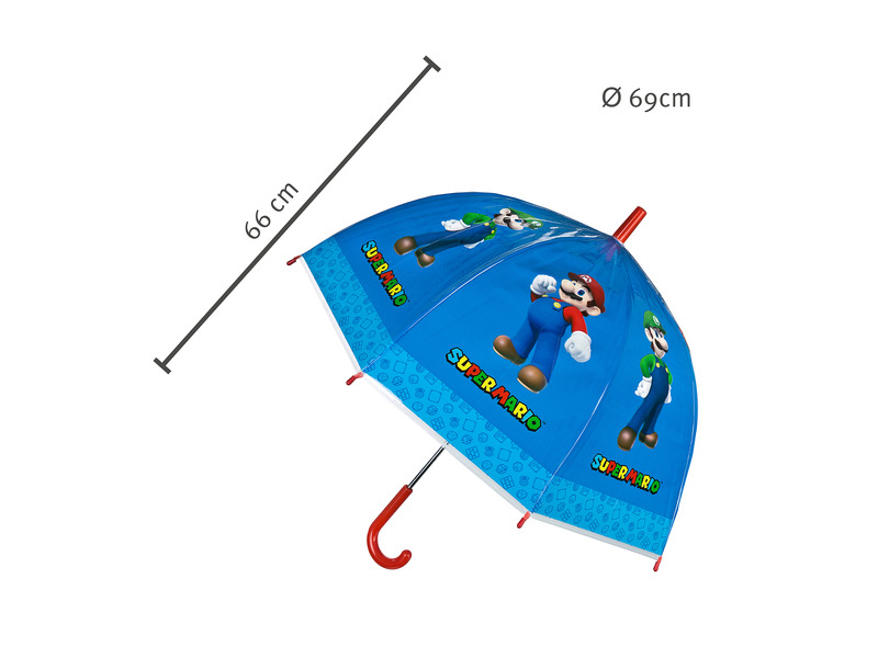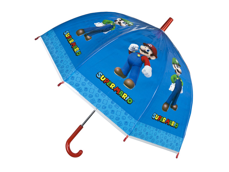 Esernyő, Super Mario Ki ne ismerné a legendás bajszos vízvezeték-szerelőt, aki a Nintendo karakterei közül talán a legnépszerűbb, és számtalan videójáték ikonja? Bárki, bárhol meglátja Őt, akkor a klasszikus játékok jutnak eszébe. Szuper Márió masszív gyermek esernyő 69 cm átmérőjű, Szuper Márió és Luigi mintával.