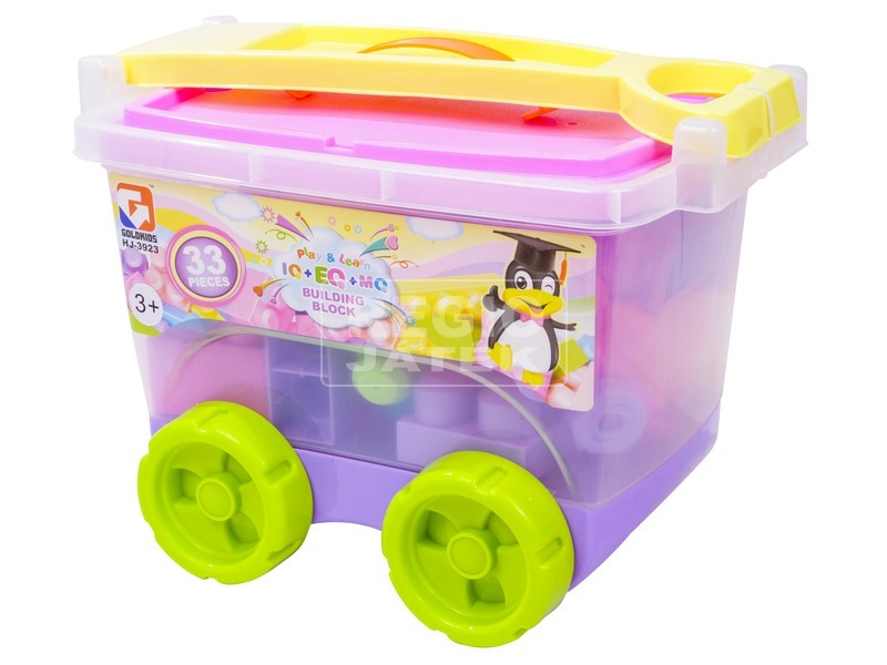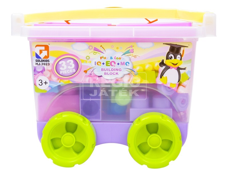 Építs műanyag építőkockákkal, és tárold őket egy praktikus húzható kocsiban! Az építőkocka kiskocsiban 33 darabos készlet színes, kifejezetten lányoknak készült műanyag építőkockákat rejt magában. A kockákból épületeket, mini járműveket is össze tudsz rakni. A kiskocsinak két fogantyúja is van, táskakélnt, is tudod cipelni, illetve húzni is tudod. A kocsi alja építőlapként is használható. Méretek: 32 x 21 x 25 cm.