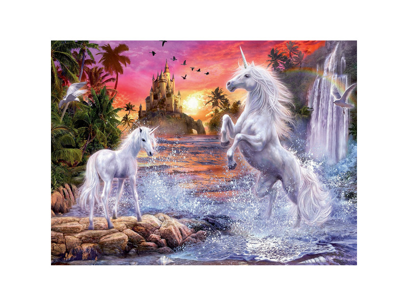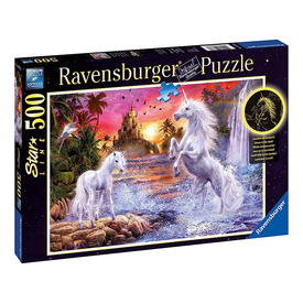 A Ravensburger 500 db-os puzzle - Unikornisok a folyóban (14873) egy 500 darabból álló puzzle a Ravensburger-től. A puzzle egy gyönyörű képet ábrázol, amelyen színes unikornisok láthatók, akik egy folyón át úsznak. A kirakó különlegessége hogy egyes részek világítanak a sötétben. A puzzle kirakása kihívást jelenthet, de nem túl nehéz, így alkalmas lehet azoknak a puzzle rajongóknak, akik szeretik a közepesen nehéz puzzle-ket. Az elkészült puzzle egy fantasztikus dekoráció lehet a szoba falán vagy bármely helyen, ahol szeretnéd megjeleníteni.