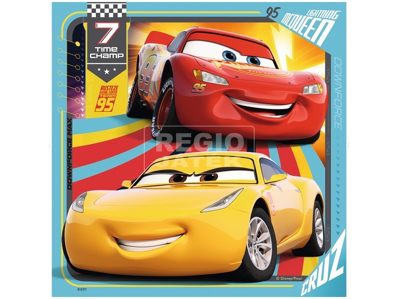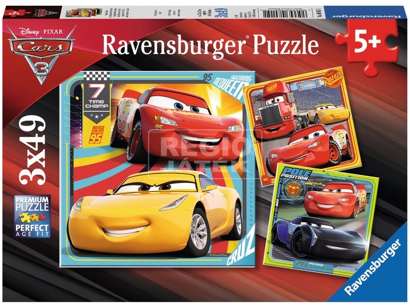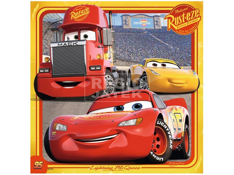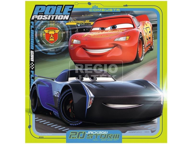 Villám McQueen és csapata, a Cars 3 rajzfilmből! A Verdák 3 - 3 x 49 darabos puzzle készlet három kirakóst foglal magában, amiken Mack, Jackson Storm, Cruz Ramirez és Villám McQueen szerepelnek. A kirakós precízen illeszkedő mozaikdarabokból rakható össze, élénk színekkel. A Verdák 3 - 3 x 49 darabos puzzle kirakott méretei: 21 x 21 cm. A kirakós 5 éves kor felett ajánlott.