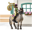 A játékszett tartalma: 1 db Criollo Definitivo kanca figura, 1 db macska figura, 1 db mozgatható lány figura, 2 db piros alma, 2 db zöld alma, 2 db sárgarépa, 1 db váza, 1 db csokor, 1 db virágláda virágokkal, 2 db almás pite, 1 db vödör, 1 db kávéfőző, 1 db gereblye, 2 db győztes rozetta, 1 db trófea, 2 db sisak, 2 db csésze, 2 db tányér, 1 db szalmabála, 3 db kantár, 3 db nyerek, 3 db nyeregtakaró, 1 db nyeregtartó, 1 db seprű, 1 db vasvilla, 1 db kefe, 1 db fésű.