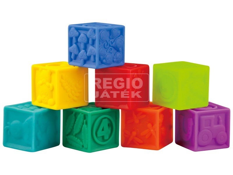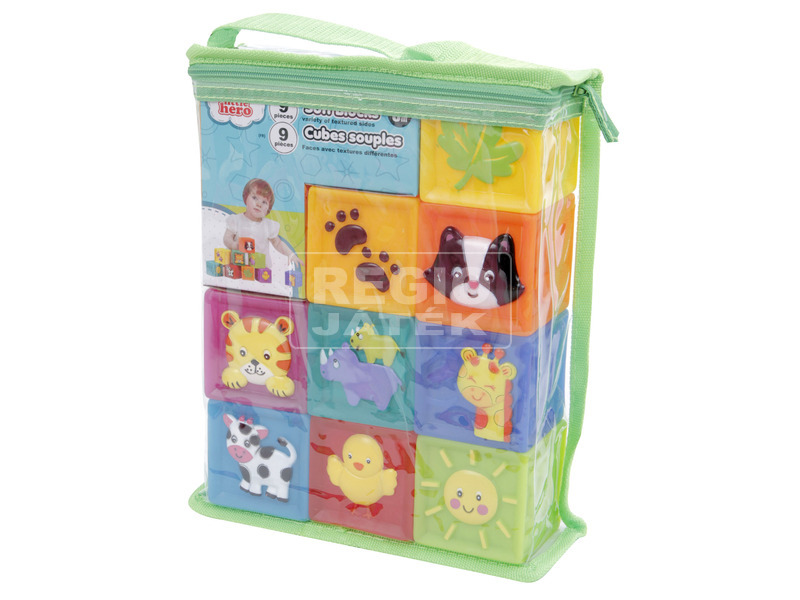 Állat mintás puha kockák, vegyes színekben! Az Állatos puha építőkocka 9 darabos készlet a háziállatokkal ismerteti meg a picit, élénk színekkel! A kockákat a baba nyomogathatja, harapdálhatja, egymásra tudja rakni, a kockák puha műanyagból készültek, ezért fürdőjátékként is használhatók. Az Állatos puha építőkocka 9 darabos készlet fejleszti a baba finommotoros mozgását, a gondolkodást és az érzékszerveket is. Kockák élhosszúsága: 5 cm.