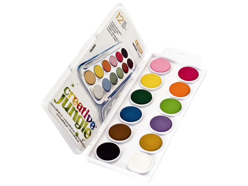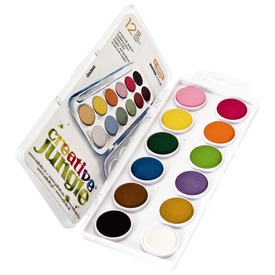 CREATIVE JUNGLE VÍZFESTÉK - kisgombos 12 szín, 22.5 mm. Könnyen felvihető ecsettel, a vízzel jól keveredik. Egyenletesen vihető fel a papírra, ennek köszönhetően finom színátmenetek érhetők el . Idővel, ahogyan a festék megszárad, matt színárnyalatokat kapunk foltok nélkül.