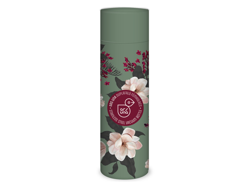 Duplafalú fémkulacs 600ml- Flowery pink