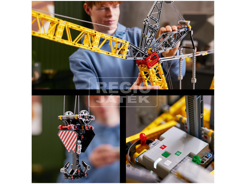 Hatalmas és erős. Ez lesz a következő építési kihívásod. A felnőttek számára készült LEGO® Technic Liebherr LR 13000 lánctaplas daru (42146) modell 99 cm magas, és a LEGO Technic választék egyik legnagyobb készlete (2023. augusztusi állapot szerint). Részletgazdagságával és valósághű mozgásával a világ egyik legerősebb daruja előtt tiszteleg. Úgy mozog, mint egy igazi daru Merülj el a részletekben és az építésben a készlettel, amely a világ egyik legerősebb daruja előtt tiszteleg! Majd fogd munkára a modellt a CONTROL+ alkalmazással, hogy megtudd, mire képes ez a hatalmas szerkezet. A valósághűen működik a darukormányzás, a forgótengely, a gém, a csörlő és a súlyérzékelő segítségével. Ez a te asztalod! A modell a felnőtteknek szánt LEGO készletek gyűjteményének része azoknak, akik értékelik a tökéletes tervezést. Legyen egy kézzel fogható projekt saját magadnak, vagy ajándék egy darurajongónak, ez a LEGO Technic építőkészlet örömteli építést és egy felfedezésre váró, részletgazdag modellt kínál.