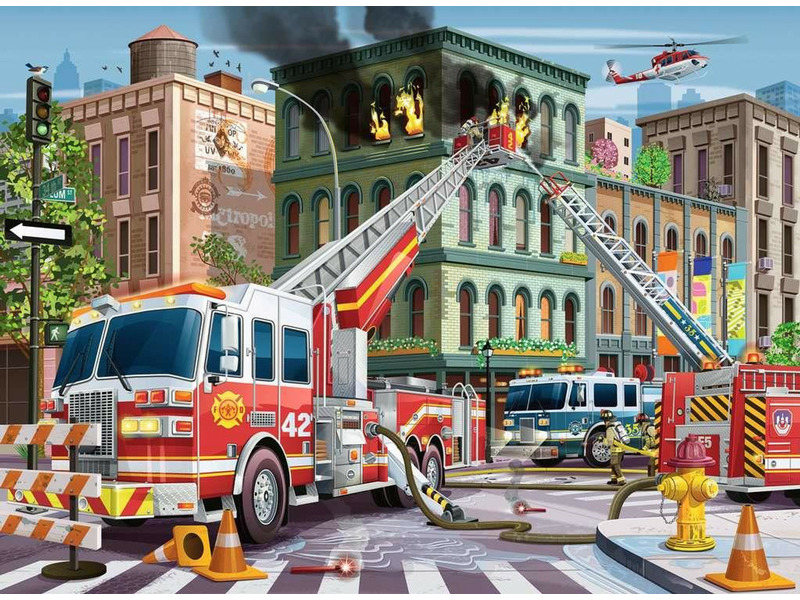 Mentsd meg a napot a bátor emberekkel, akik segítenek! A tűzoltók szerencsére mindenkit kimentettek az égő épületből. A quint teherautó léglétrája a helyén van, míg a tűzoltóautó akár 1500 gallon vizet pumpál a lángok eloltásához. Fejük fölött a helikopter személyzete az égen tartja a szemét, készen áll a segítségnyújtásra. Exkluzív illusztrációnk tele van lebilincselő részletekkel – tökéletes kirakós a leendő tűzoltóknak és a tűzoltószertár fiatal rajongóinak egyaránt! A Ravensburger neve már hosszú évtizedek óta ismert az egész világon, mint a legkiválóbb minőségű puzzle játékok készítője. A kiváló termékminőség mellett a 2D-s és 3D-s puzzle kirakók rendkívül széles választékát nyújtja, mind a képi megoldások sokféleségében, mind pedig a puzzle részek darabszáma tekintetében. Kirakott kép mérete: 49 cm x 36 cm.