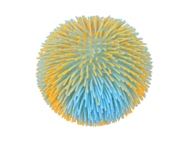 Ez egy finom bolyhos labda! A labdának puha tüskéi vannak, meg lehet szorítani, átdobni vagy hagyni, hogy a földön ugráljon.
