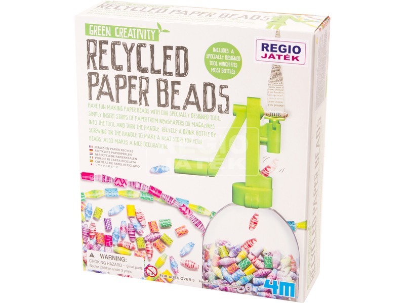 A hulladék papírt nem kell kidobnod, egy kis kreativitással ékszereket is készíthetsz belőlük! A 4M újrahasznosított papírgyöngy készlet egy furcsa szerkezetet tartalmaz, amit egy száraz, használt műanyag palackra tudsz rácsavarni. A csomagban találsz színes papírokat is, amiket a géppel fel tudsz tekerni gyöngyökké. Készíts rengeteg papírgyöngyöt, és fűzd fel őket a ruganyos madzagra! Már csak egy kis ragasztó, és már kész is vannak a színes ékszerek! A 4M újrahasznosított papírgyöngy készlettel díszeket, dekorációs elemeket is készíthetsz. A 4M újrahasznosított papírgyöngy készlet tartalma: gyöngykészítő gép, mintás papírlapok, ruganyos madzag, kapocs, használati utasítás.