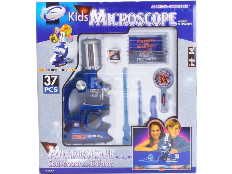 Vizsgáld meg a környezetedben lévő tárgyakat Mikroszkóppal! A Mikroszkóp készlet kiegészítőkkel bevezet a kutatók és tudósok világába! A mikroszkóp 10x, 30x és 60x lencsékkel van felszerelve, amik 100x -200x-400x nagyításra képesek! A mikroszkóp lemezeit kis tükörrel és LED-es fénnyel is meg tudod világítani, ráadásul a Mikroszkóp készlet kiegészítőkkel még rengeteg mást is tartogat számodra! A lemezekre rá tudod tenni a vizsgálandó tárgyat, vagy különböző anyagokat. A mikroszkóp 2 db AA ceruzaelemmel működik, a csomagolás az elemeket nem tartalmazza. Mikroszkóp méretei: 12 x 6 x 24 cm.