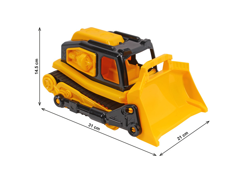 Dobd fel a játékidőt ezzel a vagány műanyag buldózerrel, amely ideális választás a munkagépek rajongóinak! A termék strapabíró műanyagból készült, így bírja a terepet, akár homokozóban, akár a gyerekszobában dolgozik vele a kis sofőr. A mozgatható tolólap segítségével a gyerekek könnyedén tologathatnak homokot, kavicsot vagy játékokat, miközben játékosan fejlődik a kézügyességük és a képzelőerejük.