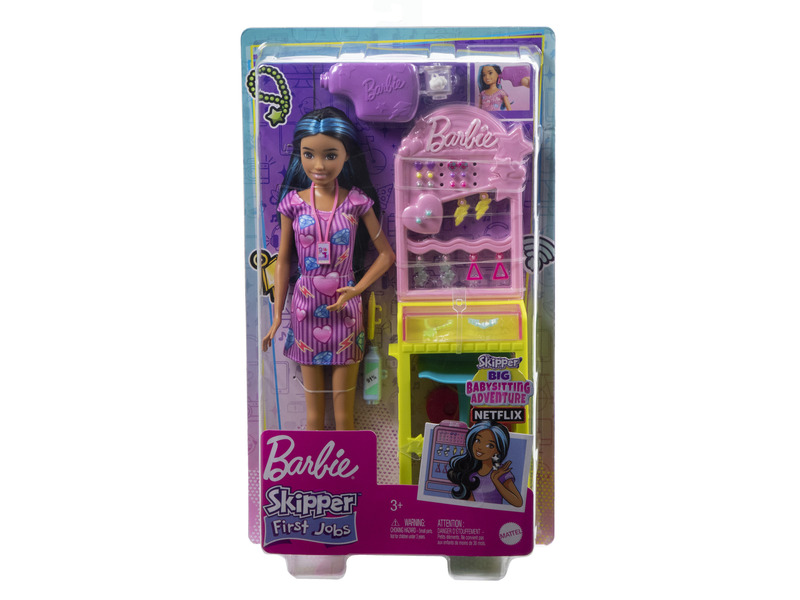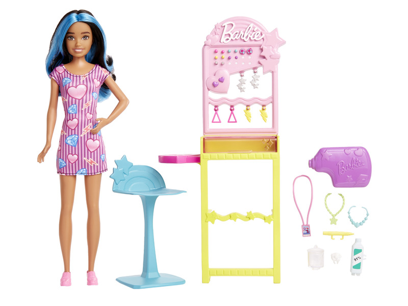 A Barbie Skipper: First Jobs - Ékszerstand játékszett lehetővé teszi a gyerekek számára, hogy Barbie tini húgával, Skipperrel együtt felfedezhessék a munka világát. A készletben található ékszerstandon Skipper nemcsak az ékszereket adhatja el, hanem fülbelövést is vállalhat.