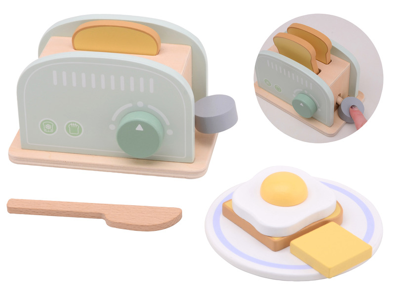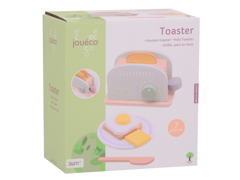 Reggeli készítés játékosan? A Jouéco® fából készült kenyérpirítóval a gyerekek saját konyhájuk mestereivé válhatnak! A készlet része két pirítós, vaj, kés, tányér és természetesen maga a pirítógép – minden, ami egy jó reggelihez kell. Kiváló minőségű faanyagból készült, biztonságos, természetes színezékekkel festve. A szerepjáték segíti a szociális készségek és a kézügyesség fejlődését, miközben hatalmas móka!