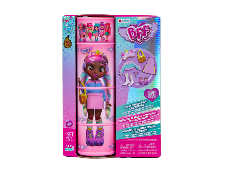 A Cry Babies Magic Tears kedvenc szereplői mind felnőttek! Jassy stílusos szivárványos haja, üvegszemei ??és 6 artikulációs pontja minden kalandra készen áll! Trendi ruhát visel egy imádnivaló unikornis sapkával! Sportos rózsaszín és kék kabát, aranyos rózsaszín szoknya és hozzáillő tornacipő van rajta! Díszítse őt perec alakú táskájával, és a hozzá illő BFF nyakláncával!