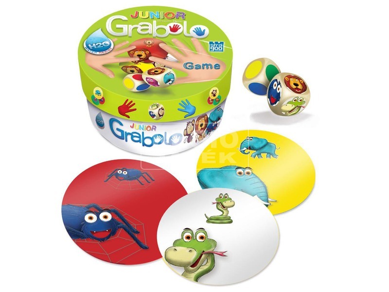 Megérkezett a már jól ismert Grabolo társasjáték Junior változata! A társas a reflexek, a memória és a megfigyelő készség fejlesztéséhez segíti hozzá a kicsiket. Dobj a két kockával, az megmutatja, hogy milyen színű és fajtájú állatot kell keresned. Koncentrálj, memorizálj és csapj le először te a kártyára!