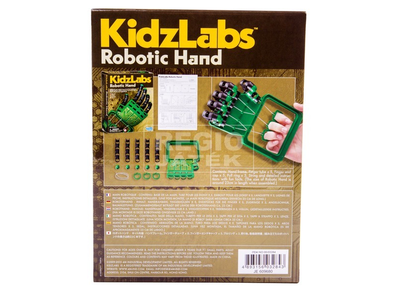 Építsd meg saját robotkezedet és nyűgözd le vele barátaidat! A 4M robot kéz készlet egy elemekből, alkatrészenként összerakható mozgatható kezet tartalmaz, ujjakkal. Építsd be a keretbe az ujjperceket, kösd őket össze damillal és irányítsd a saját kezeddel, a gyűrűk segítségével. A 4M robot kéz készlettel tanulmányozhatod a robotok mozgását, meg tudsz fogni kisebb tárgyakat és némi gyakorlás után már úgy fogod tudni használni, mintha a saját kezeid lennének! A 4M robot kéz készlet tartalma: műanyag kézkeret, irányító gyűrűk, damil, ujjpercek, ujjvégek.