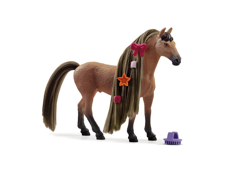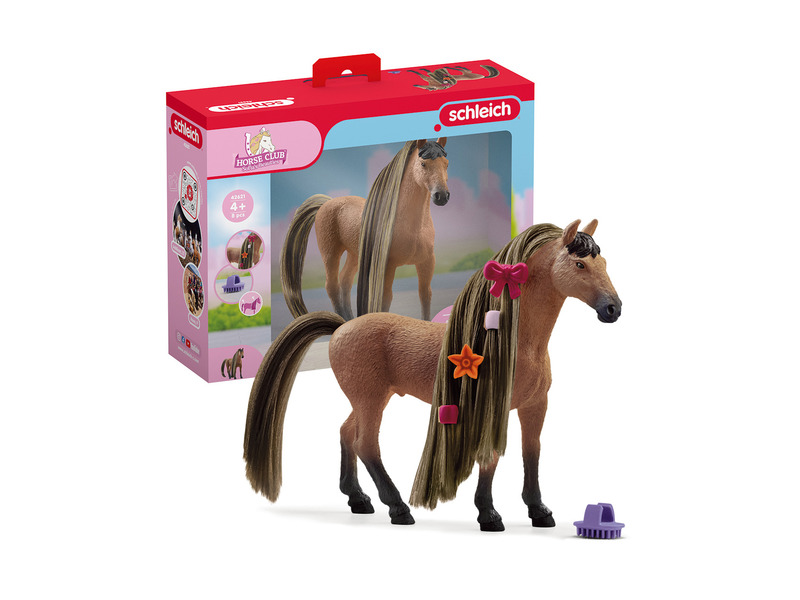 A Schleich Beauty Horse Akhal teke csődör 42621 figura kiváló kiegészítője lehet a Sofia',s Beauties mesés világának, ahol minden a barátok (Sofia, Kim és Leo), a lovak, a stílus és a szépség körül forog. A csodálatos Akhal teke csődör Beauty Horse sivatagi otthonának tipikus homokszínű bundáját viseli. De nem volt mindig olyan nyűgös az ápoltságával kapcsolatban. Most veled van, a legteljesebb figyelmedet szentelheted gyönyörű, hosszú sörényének! Ha előtte gondosan megfésülöd, csodálatos fonott frizurákat készíthetsz. A hajkiegészítők készen állnak és várják a végső formázást. Cserélhető sörény és farok. Fésülhető és fonható sörény. Csattal, fésűvel és gyöngyökkel.