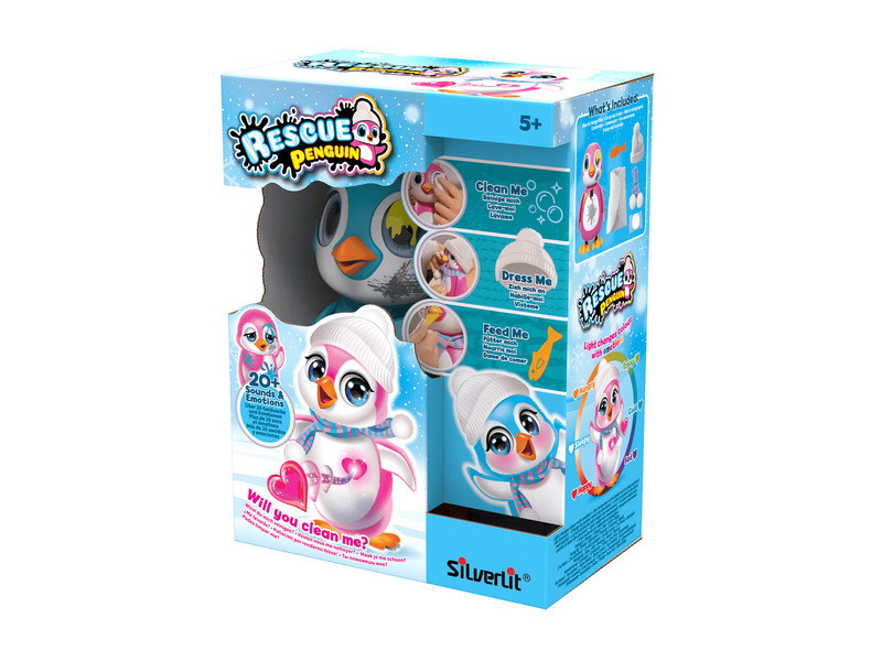 Indulj pingvinmentő akcióra! A Csupaszív Pingvin csak arra vár, hogy a gyermekek örökbe fogadják, megtisztogassák, felöltöztessék, megetessék és megszeretgessék – akárcsak egy valódi kiskedvencet. Ez az interaktív jóbarát több mint 20 hang és érzelem kifejezésére képes, a mellkasán található szív színe pedig a kis totyogó hangulatától függően változik: lehet éhes, álmos, boldog, szomorú, fázós vagy vidám. A készlet egy sapit, egy sálat, egy játék halfalatot, egy törlőkendőt és pamacsot, egy köszönetnyílvánítást, illetve egy Csupaszív Pingvint tartalmaz, kék vagy rózsaszín színben.