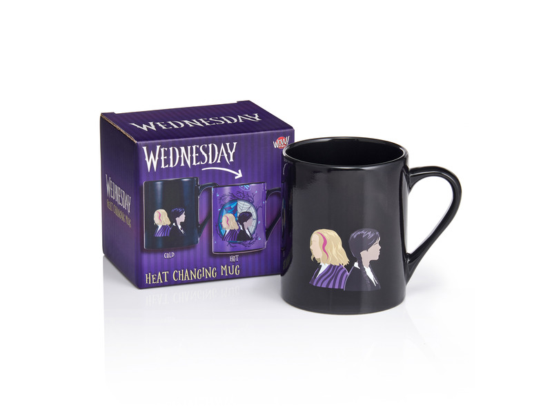 Élvezze a reggeli kakaó/tea varázsát egy varázscsészéből melyet a Wednesday és Enid hőre változó bögre ihletett meg. A forró tea vagy más folyadék hatására előtünnek a Wednesday és Enid híres jelenetei.