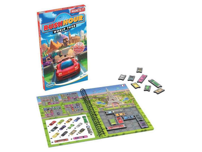 A Rush Hour mágneses úti társasjáték segítségével navigáld a járműveket a világ nyüzsgő forgalmi dugóin keresztül.