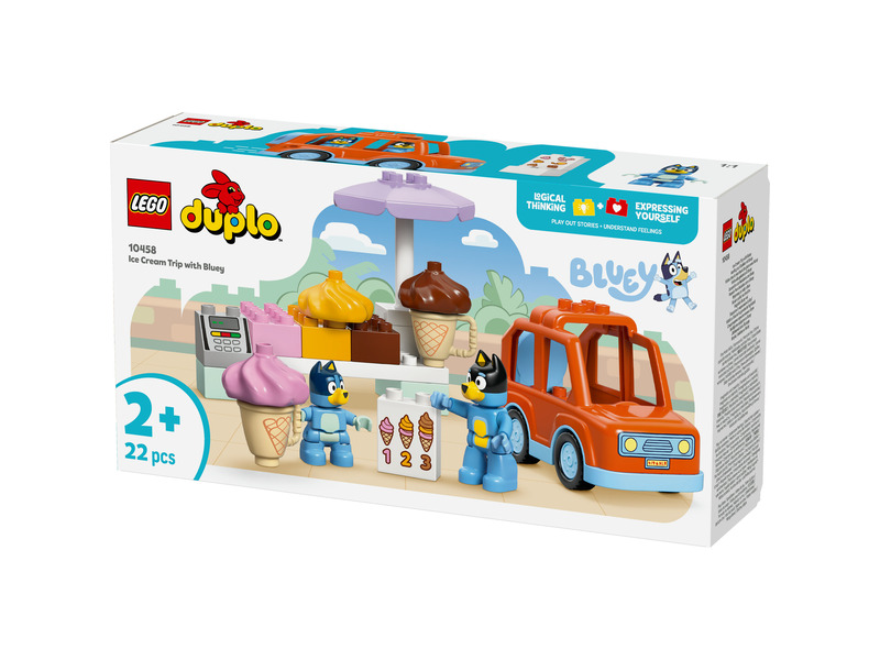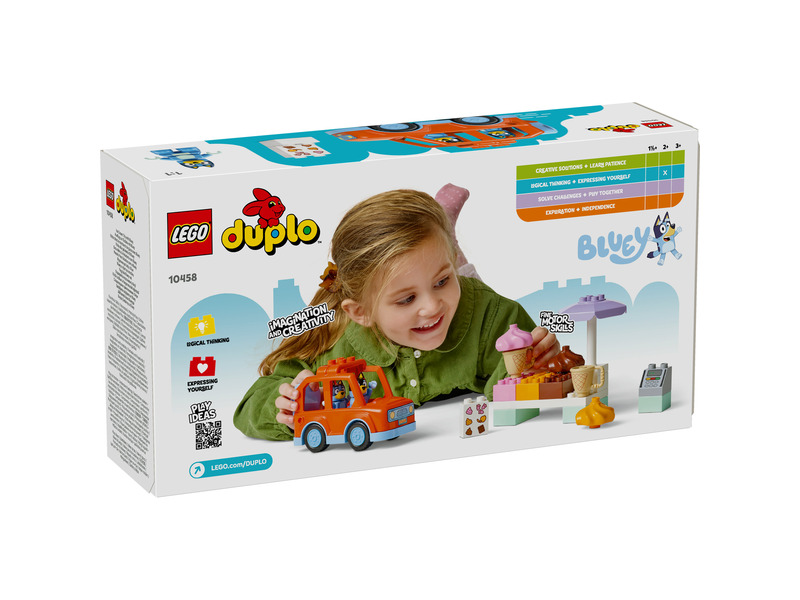 Hadd merüljenek el az óvodások a szórakoztató történetmesélésben a Fagyizás Bluey-val (10458) kisgyermekjátékkal! Az óvodások örömüket lelik majd a fantáziadús játékban, miközben LEGO® DUPLO® kalandokra indulnak ezzel a járműves játékkészlettel, hogy átélhessék a Bluey című műsor jeleneteit.