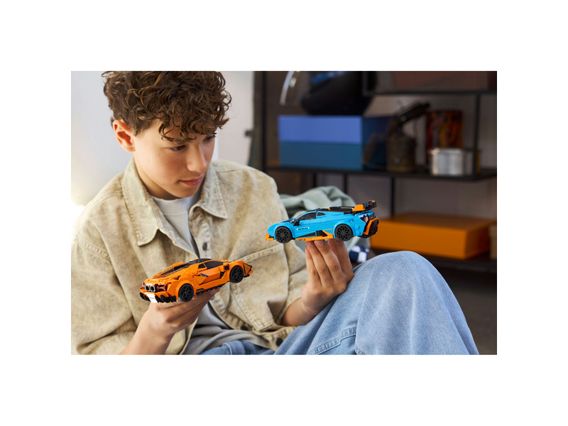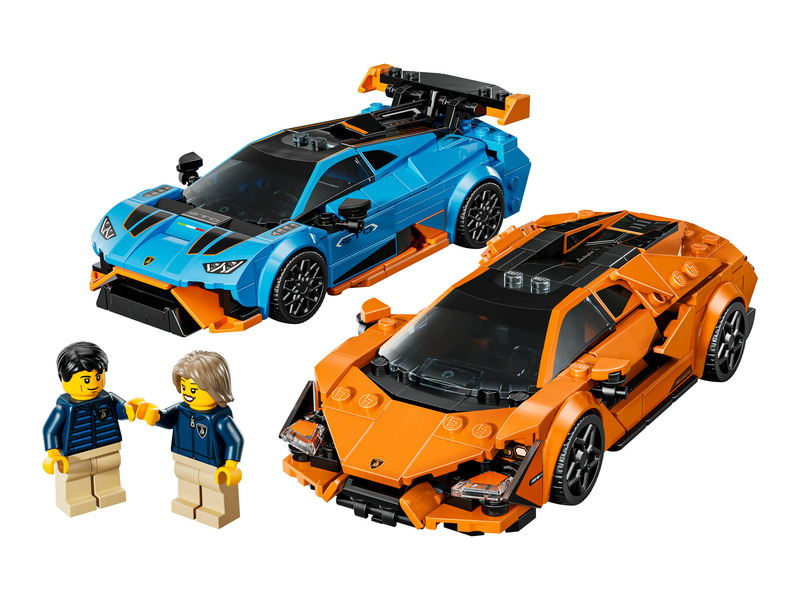 A V12-es motorral felszerelt Revuelto az olasz autógyártás legerősebb modellje, míg a Huracán STO az utakon és a versenypályán is megállja a helyét. Mindkét játékautón az igazi Lamborghini autók valósághű részleteit találod, ilyen például a légbeömlő, a légterelő és a futurisztikus, Y-alakú első és hátsó fényszóró. Mindegyik játékautóhoz tartozik egy pilóta minifigura, akit a gyerekek a volán mögé helyezhetnek, hogy versenyezhessenek.