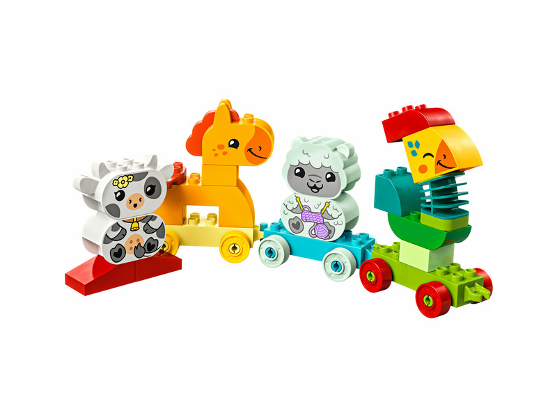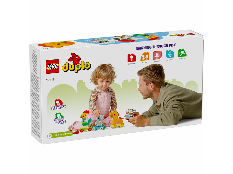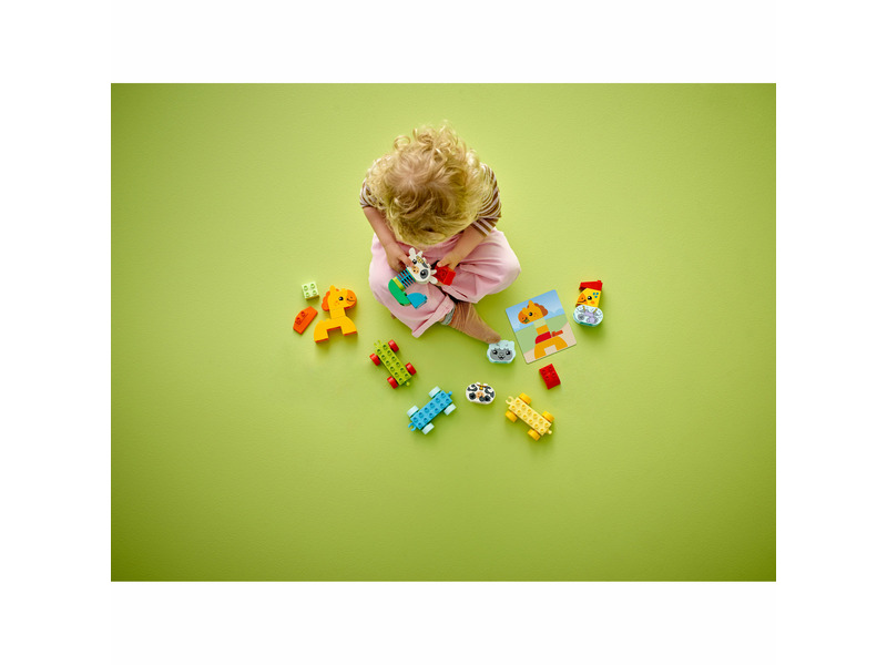 Ismersz olyan kicsiket, akik szeretik a kreatív és természethez kapcsolódó játékokat? Akkor mutasd meg a 18 hónapos vagy annál nagyobb gyermekeknek a színpárosító játékot a LEGO® DUPLO® Első Állatok a vonaton (10412) készlettel! Ez a kisgyermekeknek készült fejlesztőjáték, amelyhez 4 aranyos, megépíthető játékállat tartozik: egy kakas, egy ló, egy bárány és egy tehén, vidám és játékos utazásra hívja a kicsiket. A gyermekek fejleszthetik problémamegoldó készségüket is, miközben a kártyák alapján megépítik az állatokat és a megfelelő színű kocsival párosítják őket. A készlet 2 extra építőkockát is rejt, így a gyermekek kiélhetik a kreativitásukat, ahogy megépítik, majd saját ötletük alapján újabb játékfigurákká alakítják át az állatokat. Akicsik finommozgásait olyan játékos elemek fejlesztik, mint a kakas rugalmas nyaka vagy az összekapcsolható kocsik. A LEGO DUPLO állatos játékok egyenesen a gyerekek kezébe adják a végtelen játék, az önkifejezés és a vidám felfedezés lehetőségét, miköz ben a szülők értékes fejlődési mérföldköveket élhetnek meg.
