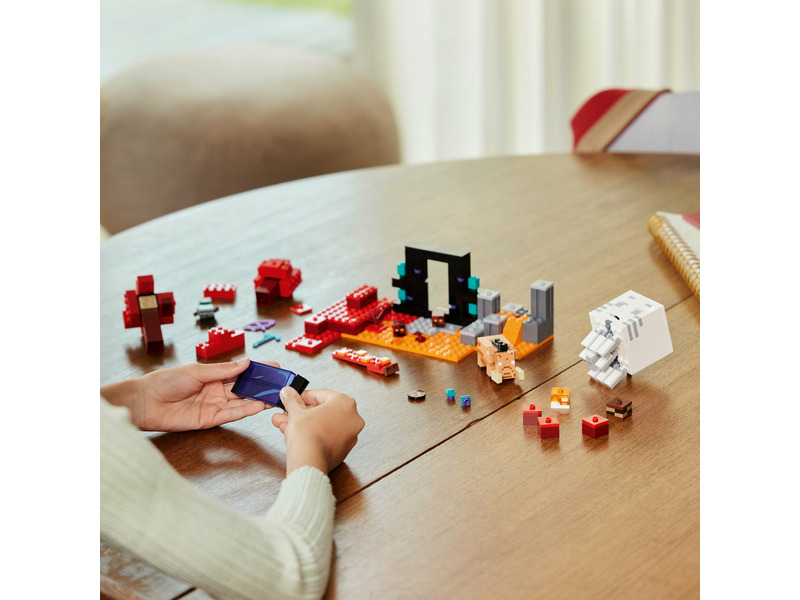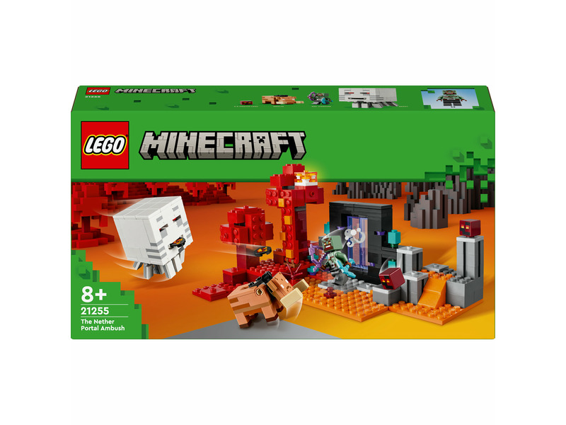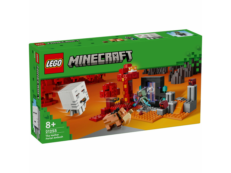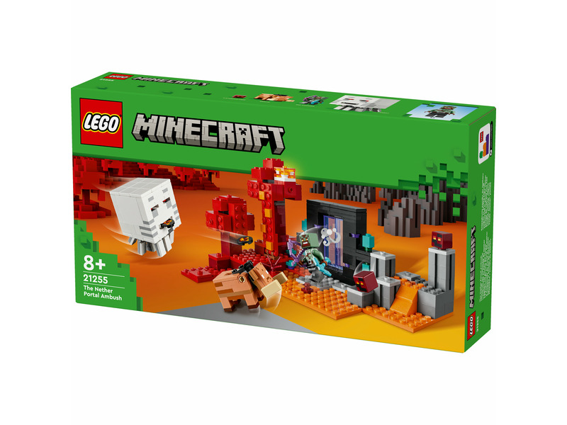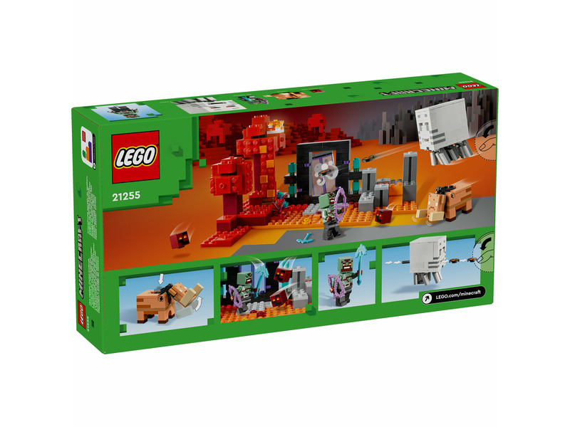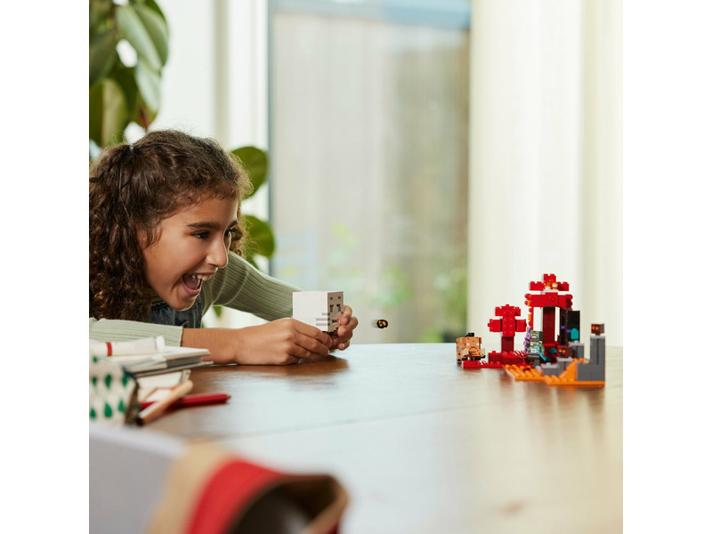 Keltsd életre az igen népszerű Minecraft® videójátékot az akciódús Az Alvilág kapuja játékkal. LEGO® Minecraft® Az Alvilág kapu (21255) játékszett végeláthatatlan építési és játékélményt nyújt a játékosoknak a Minecraft mobok ikonikus szereplőgárdájával. A Minecraft kalandokat kedvelő gyerekek imádni fogják ezt a csatajelenetet ábrázoló modellt. Remek gamerjáték 8 éves kortól. Ez a gyerekeknek készült építőjáték tartalmaz egy ork harcos figurát személyre szabható skinnel, aki átutazik a Minecraft Alvilágportálon a Karmazsin erdő és a Bazalt Delta közti határra. Ahogy a játékosok felfedezik az erdő gombákkal teli fáit, a játék híres mobjainak sorával kell megküzdeniük: 2 magmakockával, egy hoglinnak, akinek ujjal irányítható öklelő feje van és egy Minecraft szellemfigurával, aki korongokat lő a szájából. Hogy fokozzuk a borzongást, a szellem híres arról, hogy portálokat pusztít, és örökre csapdába ejti a játékosokat! Az ifjú építők imádni fogják a LEGO Builder appot is, amellyel a felhasználók felnagyíthatják és 3D-ben elforgathatják a modelleket, és követhetik a haladásukat.