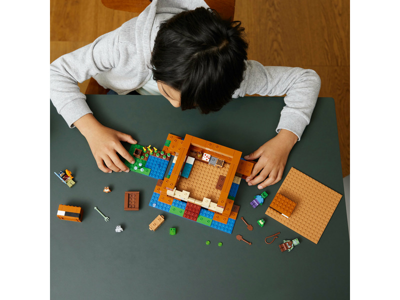 Ez a LEGO® Minecraft® játékház béka formájú és a játék népszerű karaktereit tartalmazza. LEGO Minecraft A békaház (21256) egy gyakorlatias gamerajándék 8 éves vagy nagyobb gyerekeknek. Építőjáték gyerekeknek, akik szeretik a Minecraft játékoz. A békaház tele van eredeti Minecraft részletekkel – ágy, asztal, barkácsasztal, kemence, torta és méz –, a levehető tető pedig könnyű hozzáférést biztosít a belsejéhez. Odakint van egy farm, ahol a játékosok céklát, gabonát és virágokat termeszthetnek, és van egy tó, ahol a gyerekek használhatják a pecabotot és az evezős, sötét tölgyfa játékhajót. 3 féle békát (zöld, szürke, barna) és nyálkát tartalmaz, aminek, mint ahogy a játékosok majd látják, különleges kapcsolata van a békákkal. Ez a sokoldalú LEGO® Minecraft szett tartalmaz egy Minecraft hőst, egy zombit és egy tengerizombi-figurát szigonnyal, ami végeláthatatlan akciót és játékos mókát biztosít. Az ifjú építők imádni fogják a LEGO Builder appot is, ahol felnagyíthatják és elforgathatják a modellek 3D-s változatát, és követhetik a haladásukat.