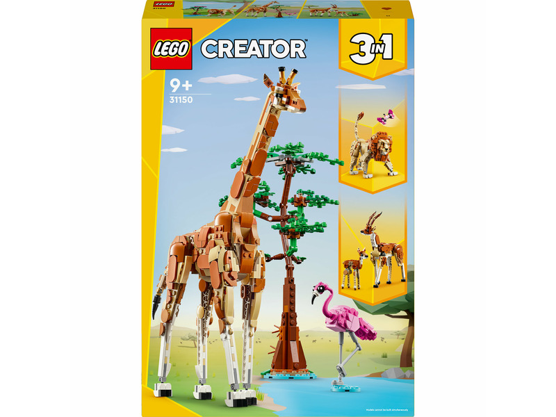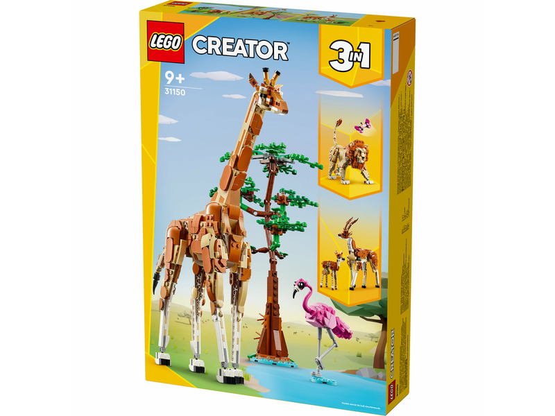 A 9 éves vagy annál nagyobb fiúk és lányok egy lenyűgöző szafarira indulhatnak a LEGO® Creator Afrikai vadállatok (31150) játék építőkészlettel. A gyerekek örömüket lelhetik a fantáziadús játékban a három játék állattal, amelyek közt található egyzsiráf beállítható lábbal, hosszú nyakkal, farokkal és füllel, aki egy apró, kockákból épült fa és egy játék flamingó mellett áll. Mind a 3 modell lenyűgöző kiállítási darab lehet a játékidő végén. Ez a LEGO szett a játéklehetőségek egész világát tárja fel 3 különböző játék állattal, amelyeket ugyanazokból a kockákból lehet megépíteni. Építhetnek egy beállítható játék zsiráfot fával és flamingóval, majd átépíthetik 2 beállítható játék gazellává, anya a kicsinyével, 2 bokorral, vagy átalakíthatják egy játék oroszlánná egy fával és egy pillangóval. Remek ajándékok lehetnek a LEGO Creator 3 az 1-ben játékok, amelyek 3 különböző modellt rejtenek egyetlen dobozban! A gyerekek imádni fogják a megépítést, az átépítést és az újraépítést. A 3 az 1-ben készletek olyan modellválasztékot kínálnak, amellyel a gyerekek hódolhatnak a legfőbb szenvedélyeiknek, mint például a szupergyors járművek, a lenyűgöző állatok vagy a részletgazdag városi jelenetek.