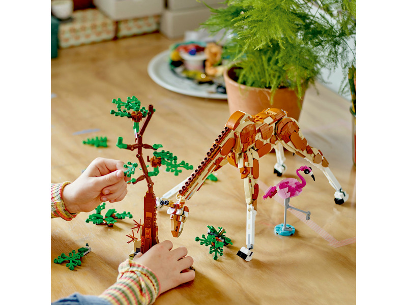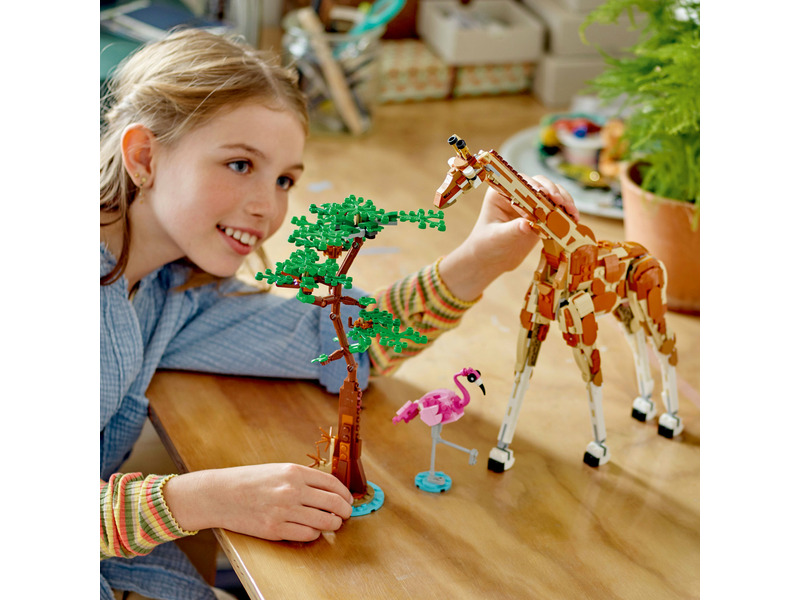 Menj szafarizni ezzel a LEGO® Creator Afrikai vadállatok 3 az 1-ben szettel, és építs 3 különböző játék állatot: egy zsiráfot, egy gazellacsaládot és egy oroszlánt.
