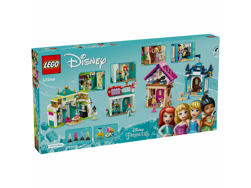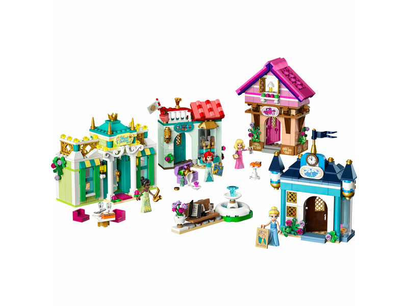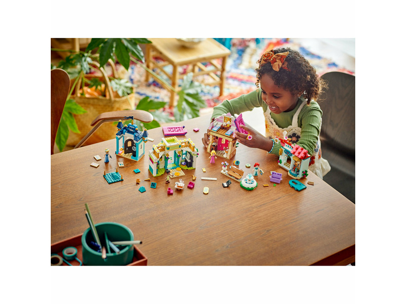 Lepd meg a rajongókat egy építőjátékkal, amely 4 épületet, 4 LEGO® Disney Princess minifigurát és 2 gyűjthető gyűrűt tartalmaz, amelyeknek cserélhető a díszítése.