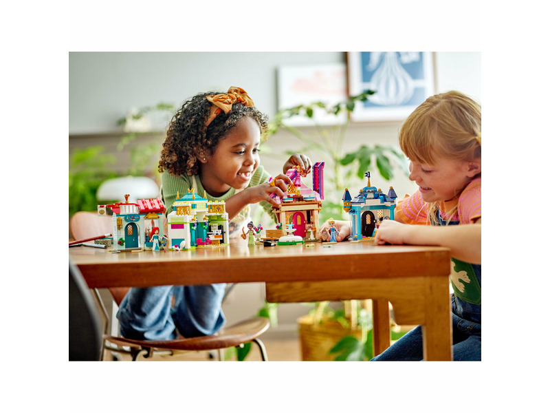 Nyűgözd le és szórakoztasd a Disney Princess rajongókat és a 6 éves vagy nagyobb gyerekeket ezzel a részletgazdag LEGO® Disney Princess: Disney hercegnők piactéri kalandjai (43246) építőjátékkal! A doboz tartalmaz 4 megépíthető játék épületet,egyiknek egy apró tároló van a tetején, és egy kisebb modellt virágcseréppel, paddal és szökőkúttal. Tiana, Csipkerózsika, Hamupipőke és Ariel LEGO® Disney minifigurákat, valamint 2 gyűjthető gyűrűt tartalmaz, amelyekhez 4, újra és újra cserélhető dí szítés tartozik. A gyerekek megtervezhetik a piactéri kalandot, majd végtelen sok történetet játszhatnak el, és a rengeteg történetindító kiegészítővel új akciókat képzelhetnek el. Ez a Disney ajándék, megépíthető játékszett segít növelni a gyerekek önbizalmát, és inspirálja a kreatív játékot. A gyerekek és a szülők is le lesznek nyűgözve a különböző épületek részletgazdagságától és színeitől, amelyek passzolnak a figurák ruháihoz. A LEGO Builder appal a gyerekeknek egy könnyű és intuitív építési élményben is részük lehet. Felnagyíthatják, 3D-ben elforgathatják modelleket, készleteket menthetne el, és követhetik a haladásukat.