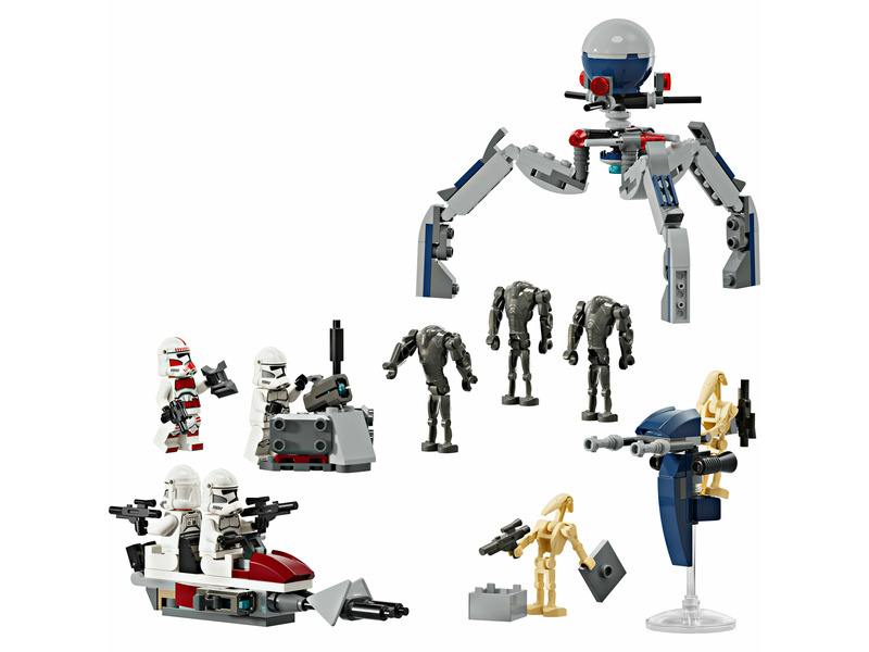 Játszd el az akciódús klónkatona vs. harci droid csatákat egy olyan készlettel, amely 4 LEGO® Star Wars™ minifigurát és 5 LEGO figurát tartalmaz.