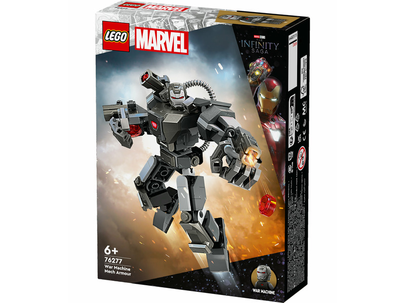 A LEGO® Marvel Hadigép robotpáncél (76277) megépíthető játékkészlet egy összerakható, csuklós robottal, korongvetőkkel és minifigura pilótával várja a 6 éves vagy nagyobb fiúkat és lányokat. A robot mellkasának nyitásával feltárul a pilótafülke, ahová a Hadigép minifigura-pilóta kerül. A szetthez 3 korongvető is tartozik – 1 a robot vállán és 2 a karjain – , és a hátán egy tárolódoboz is található, ahol az extra töltényeket tarthatod. A beállítható Marvel figurának csuklós karjai, lábai és kezei vannak, így a Hadigép és a robotharcosok rajongói véget nem érő kalandokban vehetnek részt. A gyerekek fokozhatják a játéklehetőségeket, ha a választék más LEGO Marvel robotjaival kombinálják a szettet (ezek külön kaphatók). Az extra digitális élményért pedig, az építők felnagyíthatják és elforgathatják a modellek 3D-s változatát, és követhetik a haladásukat a vidám és intuitív LEGO Builder appal.