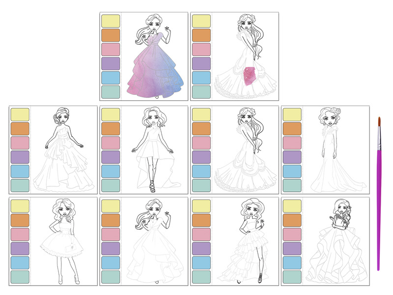 Szeretnél egyszerűen elkészíteni egy látványos festményt? Most csupán egy pohár vízre lesz szükséged, melybe ecsetedet márthatod, a színeket a különleges kifestő tartalmazza. A színpaletta mellékelve, az ecsetedet a vízbe majd a festékbe mártod és már festhetsz is. A képeken különböző mintákkal találkozhatsz, amiket életre kelthetsz a színekkel. A képekkel akár a szobádat is dekorálhatod.