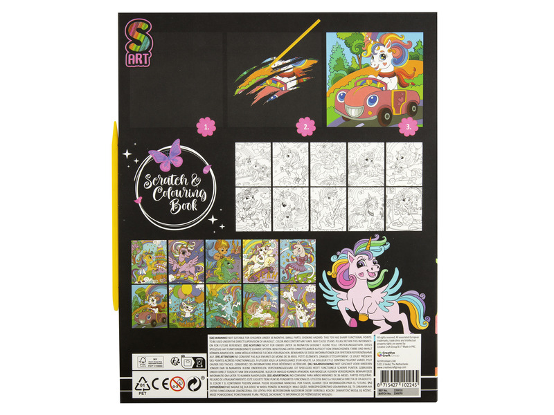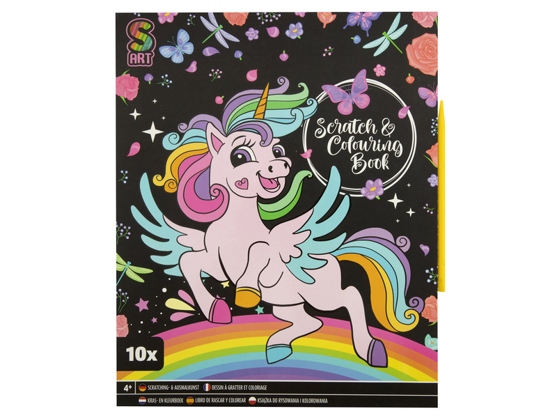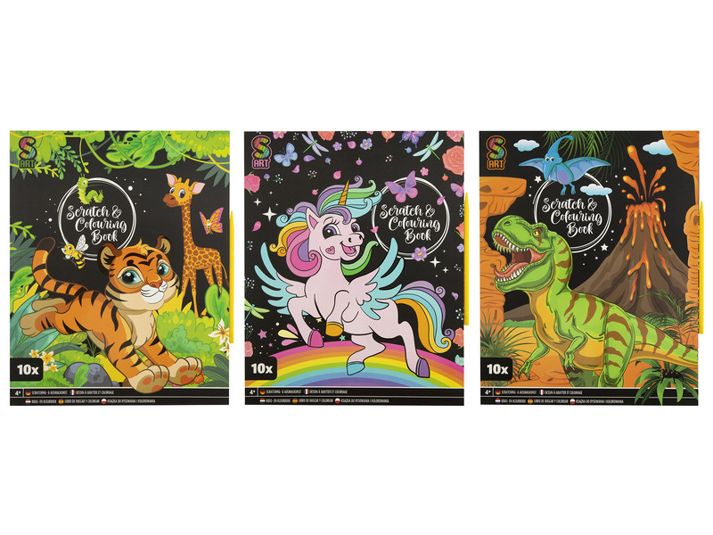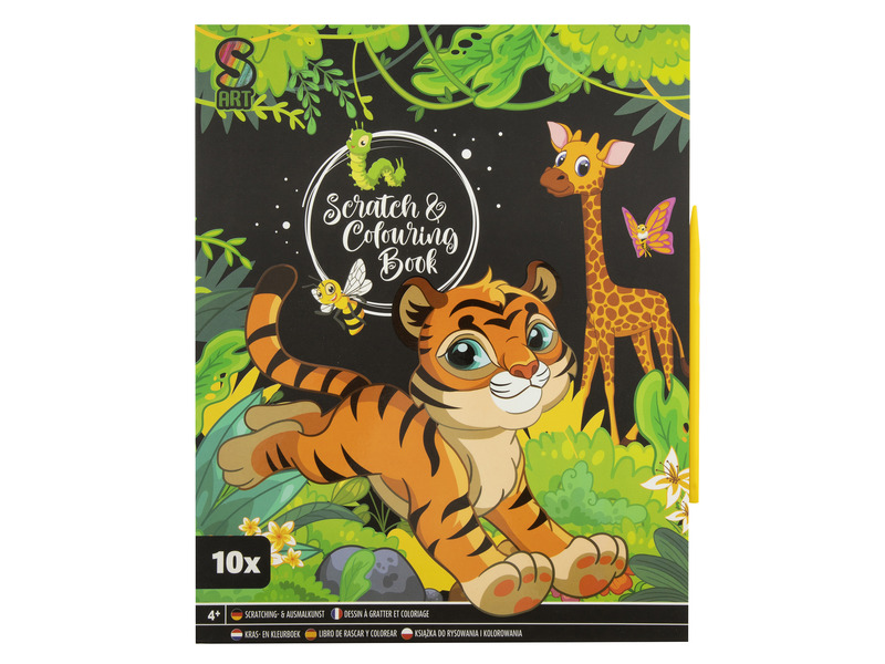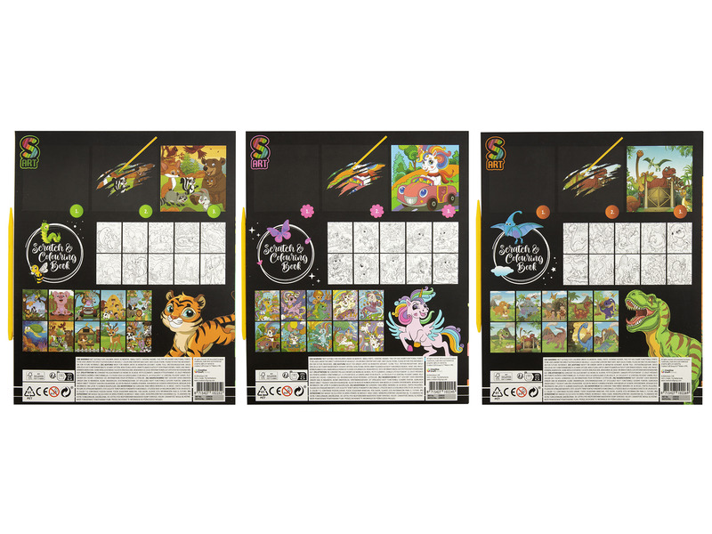 Karcolj és kaparj, a végeredmény pedig egy gyönyörű kép lesz. A kaparóval a körvonalak mentén el tudod kezdeni leszedni a réteget, és amikor már elkészültél, színváltó felület jön létre, ami egy gyönyörű képet ábrázol. A lapok egyik oldala képkarcoló, a másik oldala színező. Finomotorika készség fejlesztésére tökéletes.