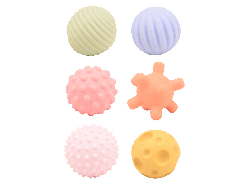 A labdák egy játék és egy oktatási segédeszköz kombinációja. A legkisebb gyerekek érzékszerveinek és motorikus képességeinek fejlesztésére szolgál. Az érzékszervi golyók segíthetnek fogzáskor. Szilkonból készültek, könnyen tisztán tarthatóak.