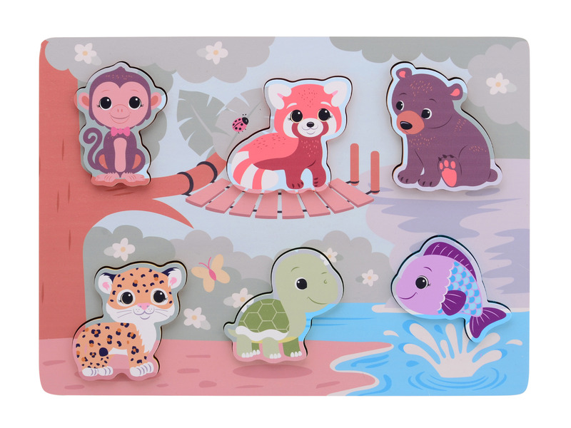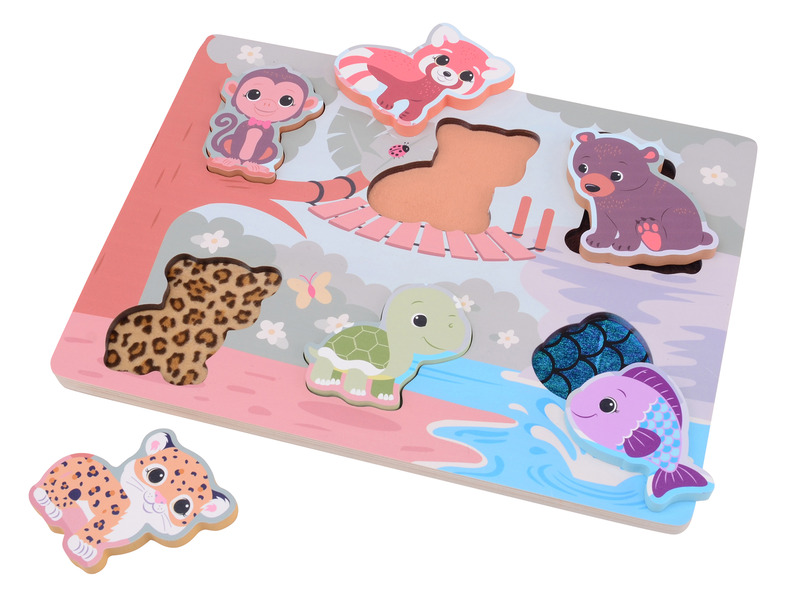 Fedezze fel a dzsungel állatbarátainak világát ezzel a különleges tapintható kirakóval, amely 6 különböző állatot ábrázol. Minden egyes kirakóelem alatt olyan érzéki részleteket találhat, mint a tigris puha bundája vagy a teknős kemény páncélja. Ez a kirakó nem csak szórakoztató, hanem értékes oktatóeszköz is, amely fejleszti a motoros készségeket, felkelti a kíváncsiságot, javítja a koncentrációt és serkenti a szem-kéz koordinációt. Engedje, hogy a gyerekek játék közben ismerkedjenek meg a természet csodáival, és tanuljanak meg új dolgokat.