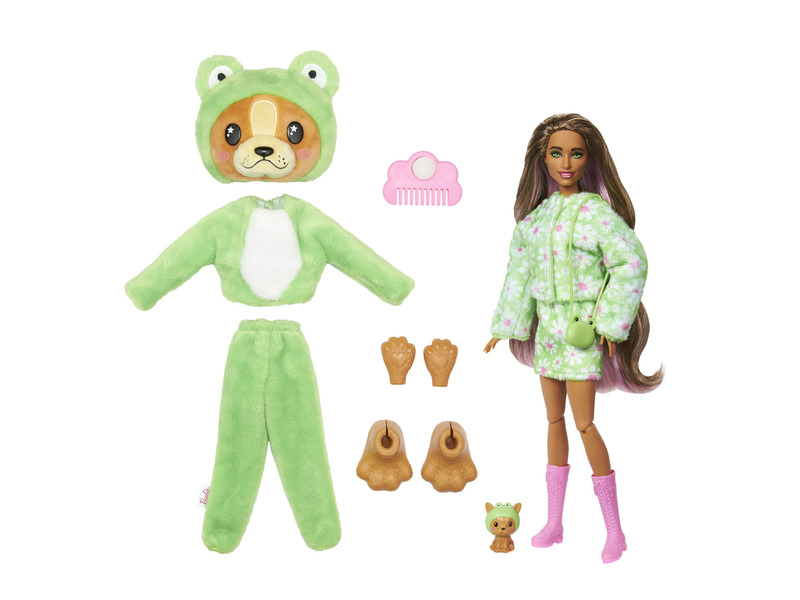 A készlet csillaga a békának öltözött kutyus jelmezéből előbukkanó stílusos baba, amelynek több ponton hajlítható végtagjai lehetővé teszik a gyerekek számára, hogy számtalan pózba állítsák, és így édes történeteket elevenítsenek meg. De a meglepetések sora itt még nem ér véget: a hideg és meleg víz hatására a baba és a kis kedvenc kinézete is megváltozik, így újabb izgalmakat hozva a játékba. A Barbie Cutie Reveal babák tökéletes társak a kreatív játékhoz, hiszen segítségükkel a gyerekek nem csak a kedvenc történeteiket játszhatják el, hanem új kalandokat is kitalálhatnak, miközben fejlesztik kommunikációs készségüket és képzeletüket. Szerezd be most ezt a varázslatos játékot, és hívd meg a kreativitást a gyerekszobába!