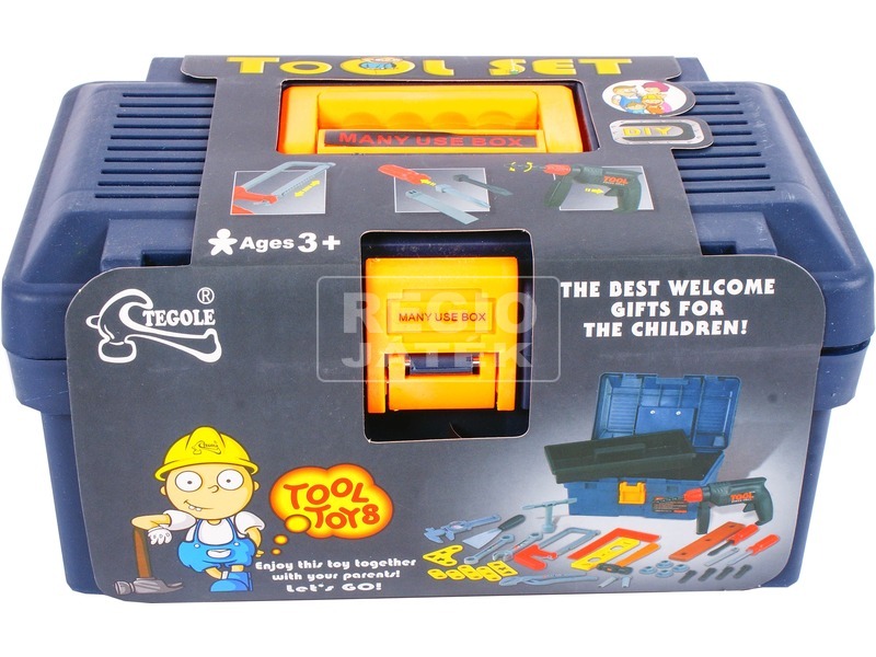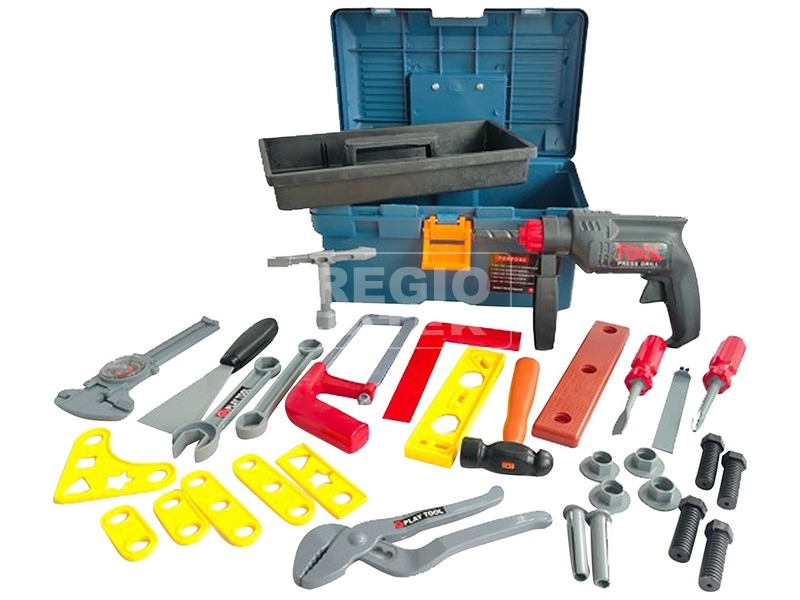 Vidd magaddal kedvenc szerszámaid, és tanuld meg használatukat! A Tool táskás szerszámkészlet egy hordozható műanyag szerszámosláda, amiben rengeteg fontos szerszámot találsz. A különféle villáskulcsokkal, franciakulccsal, fúrógéppel és csavarhúzókkal is dolgozhatsz, a markolatba kétféle csavarhúzó fejet, és egy vésőt is be tudsz fogatni. A fűrésszel a vágás tudományát tanulhatod meg, a fúrógép gombnyomásra forgatja a tokmányát. A fúrógép nem elemmel működik, ha megnyomod a gombot akkor fog forogni. A Tool táskás szerszámkészlet egy zárható praktikus ládába van csomagolva, amire akár rá is tudsz ülni! A Tool táskás szerszámkészlet csomagolási méretei: 29 x 19 x 15 cm.