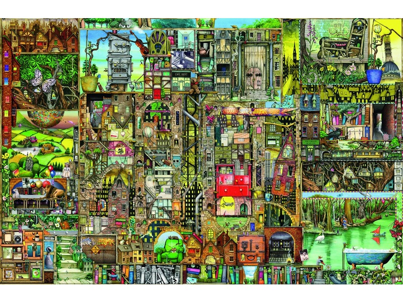 A Ravensburger 5000 db-os Bizarr város puzzle remek kikapcsolódás és koncentráció fejlesztő elfoglaltság akár az egész család számára, vagy csak önmagunk szórakoztatására. Az összerakott puzzle mérete 153 cm x 101 cm. A kirakót 14 éves kortól ajánljuk.