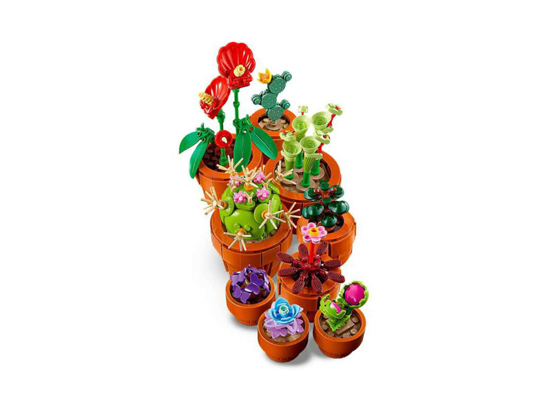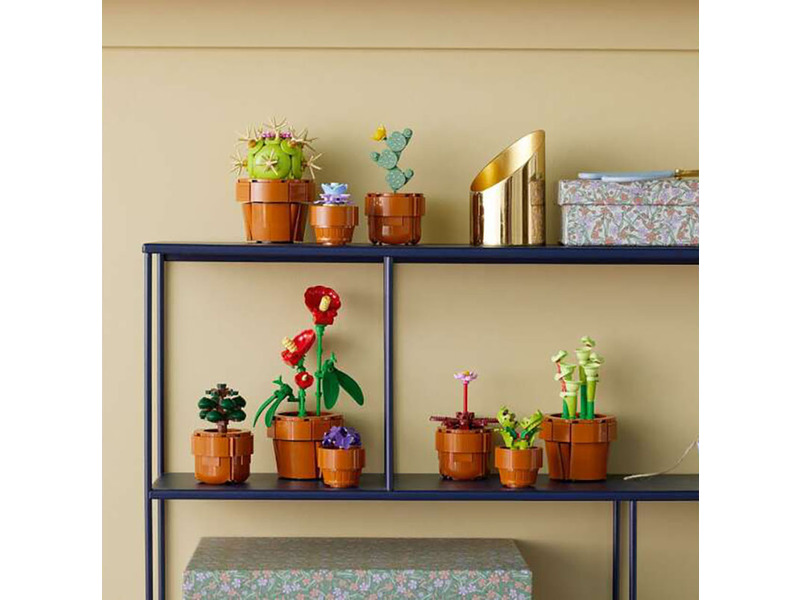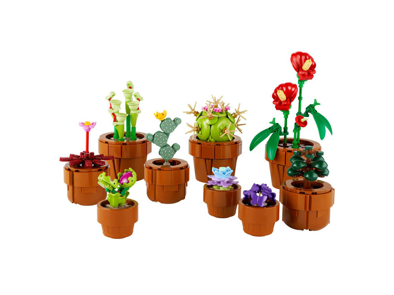 Készíts egy törődést nem igénylő növénydekorációt ezzel a felnőtteknek szóló lakásdekorációs építőszettel! A LEGO® Icons Apró cserepes növények (10329) építőprojekt szárazságtűrő, trópusi és húsevő növényfajok alapján készült, amelyek mindegyike cserépszínű növénytartóban pihen. Élvezd a kikapcsolódást a 9 növény megépítése közben, majd állítsd ki őket a lakásodban vagy az irodában!