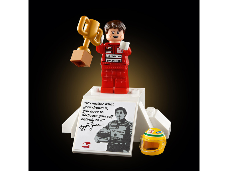 Ez a szórakoztató és magával ragadó építőkészlet tartalmaz egy működő kormányt, rúdfelfüggesztést, állítható hátsó szárnyat, sima gumiabroncsokat, tükröket, sebességváltót és egy részletesen kidolgozott V6-os turbómotort, valamint egy bemutatóállványt és egy izgalmas információs táblát statisztikai adatokkal. Ayrton Senna minifigurája tartalmaz egy dobogós bemutatóállványt és egy információs táblát Ayrton Senna fényképével és egy tőle származó idézettel.