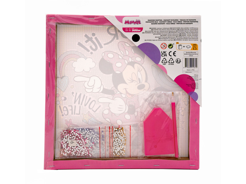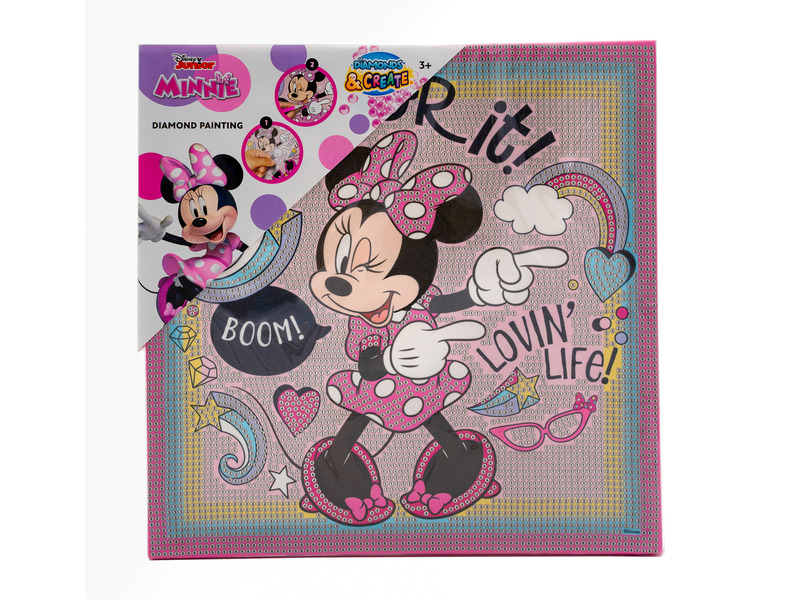 Hozd el a Disney varázsát otthonodba a Gyémántfestés vászonra - Minnie készlettel! Ez a különleges kreatív szett lehetővé teszi, hogy egy gyönyörű, gyémántokkal díszített Minnie Mouse képet készíts, amely tökéletes dekoráció lehet bármely szobában.