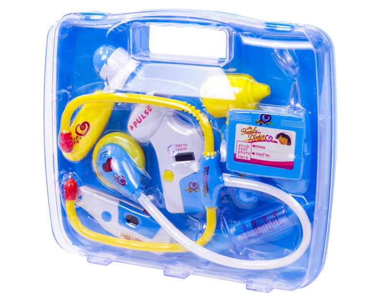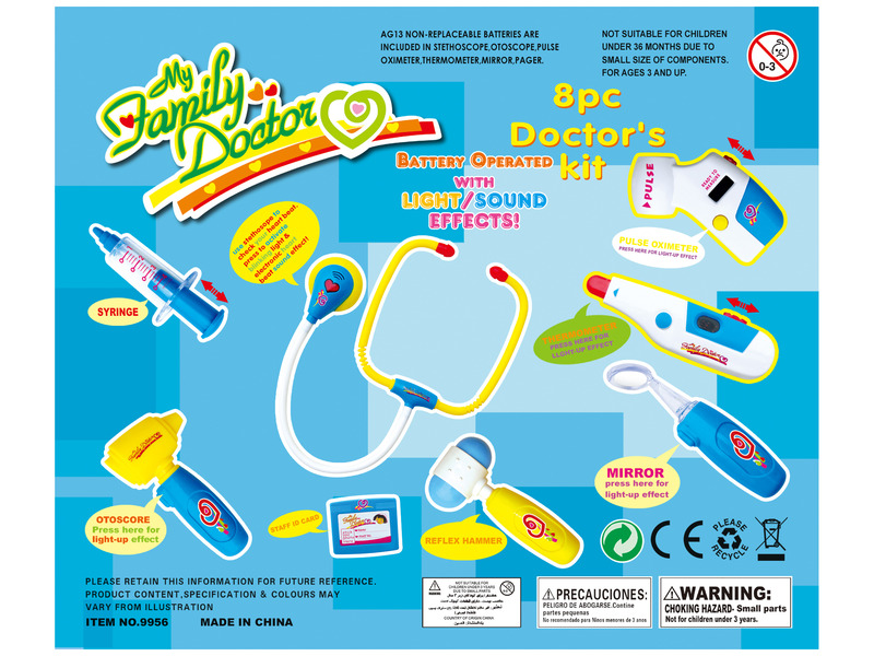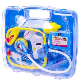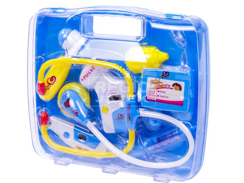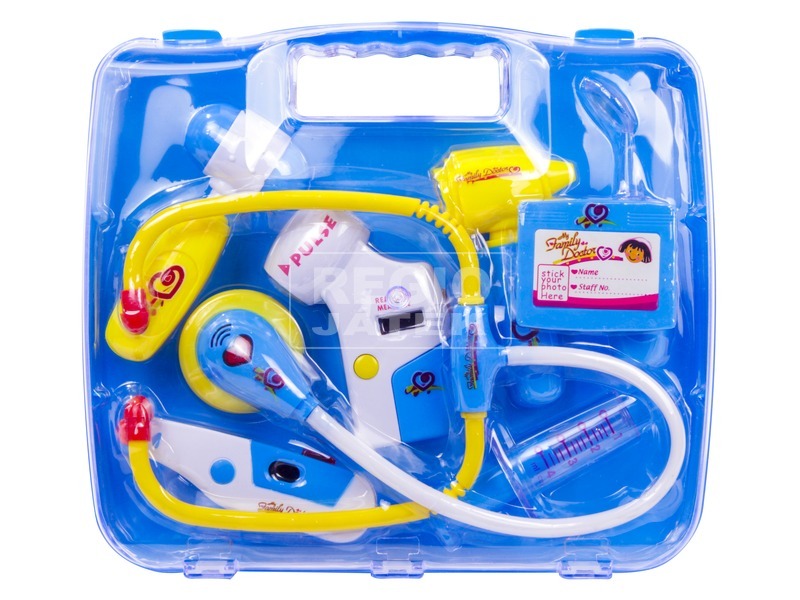 Gyógyítsd meg a sérült vagy beteg barátaid orvosi eszközökkel! A doktor készlet táskában hanggal minden eszközt magában foglal, ami egy jól felkészült orvosnak kellhet. A reflexkalapáccsal ellenőrizni tudod a páciens térdét, a sztetoszkóppal meg tudod hallgatni a szívverését. A fülét világító eszközzel tudod megvizsgálni a betegnek, ráadásul a beteg lázát is meg tudod mérni9. Ha megtaláltad, hogy mi a baj, a betegnek injekciót is tudsz adni a készletből. A Doktor készlet táskában hanggal egy praktikus, csattal záródó kofferben helyezkedik el. A játék LR44 és LR1130 gombelemekkel működik, a csomagolás az elemeket tartalmazza. Táska méretei: 27 x 6 x 23 cm.