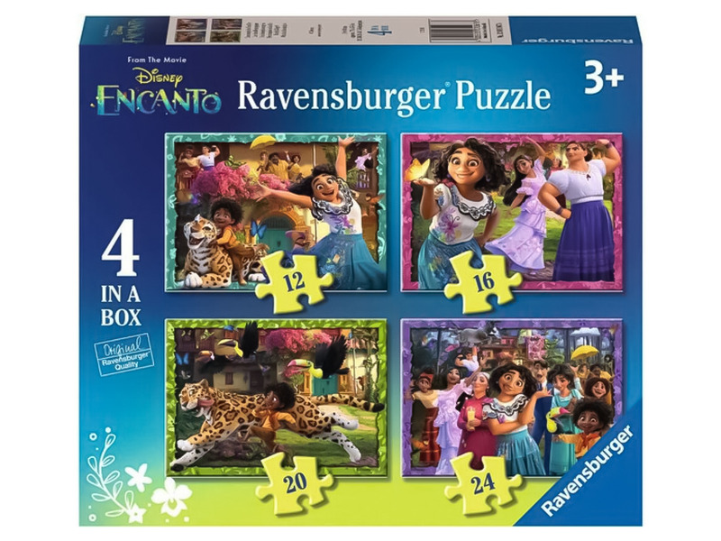 A Puzzle 4in1 - Encanto szett négy különböző kirakóst tartalmaz, mindegyik a Disney film, az Encanto egyedi karaktereivel és jeleneteivel. A puzzle-k darabszámai eltérőek, így lehetőséget adnak a különböző nehézségi szintek kipróbálására, így ideális választás kezdőknek és tapasztaltabb kirakós játékosoknak is.