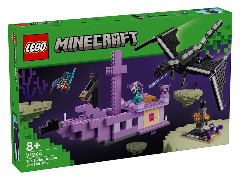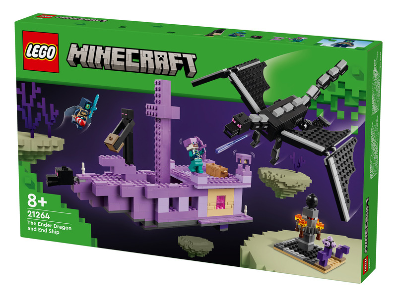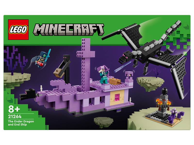A Végzetsárkány és a Végzethajó (21264) játékszett egy olyan videójátékon alapuló, gyerekeknek készült játék, amely telis-tele van népszerű Minecraft® figurákkal, sárkányos akciókkal és egy hajó fedélzetén játszódó kalandokkal! Tökéletes Minecraftsárkányos ajándék olyan 8+ éves gyerekeknek, akik szeretik a kockákból épült felfedezőjátékokat. A játékosok belépnek a veszedelmes Vég biomba, ahol meg kell küzdeniük a Végzetsárkánnyal. Minden végtagja mozgatható és állítható ennek a teljesen csuklós Minecraft modellnek. A Végzethajó teljesen felszerelt belseje a levehető tetőn és a nyitható oldalakon át érhető el. A hajóorról levehető a sárkányfej, és sisakként is használható. Belül a gyerekek egy főzőállványt találnak, amelyen élettöltő bájitalok vannak. Olyan Minecraft figurák tartoznak a szetthez, mint a Végzetfelfedező, elytra szárnyakkal és tűzijáték-rakétával, a Végzetlovag, a Shulker és a Bevégző. A kiegészítők közt található az értékes sárkánytojás. A digitális szórakozás érdekében az építők felnagyíthatják, és 3D-ben elforgathatják a modelleket, valamint követhetik a haladásukat az intuitív LEGO® Builder appal.