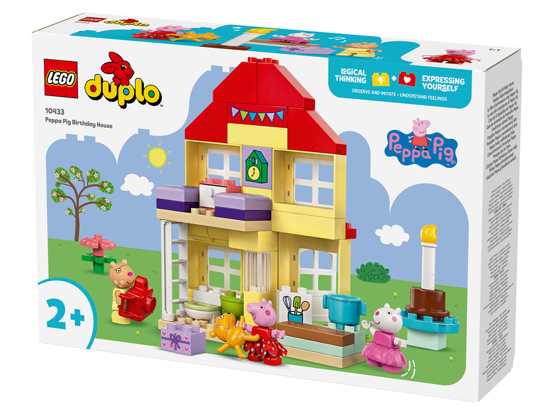 Lepd meg Peppa malac rajongóit egy meghívóval a buliba! A Peppa malac születésnapi háza (10433) játékszettel a lányok, fiúk és 2+ éves óvodáskorú gyermekek együtt ünnepelhetnek Peppával és barátaival. Ez a Peppa malac játék telis-tele van olyan sajátosságokkal, amelyeket a kisgyermekek felismernek majd a tévéműsorból. A szetthez Peppa, Pedro póni és Suzy bari figurák, valamint Peppa Teddy nevű plüssmackója tartoznak. Az ikonikus házban van egy létráról megközelíthető hálószoba és egy konyha, ahol a kicsik eljátszhatják, hogy születésnapi tortát készítenek. Található egy fürdőszoba is kézmosóval, ahol a felnőttek elmagyarázhatják, miért fontos a kézmosás, főleg a tortaevés előtt! A LEGO® DUPLO® Peppa malac átépíthető játékokat úgy terveztük, hogy az óvodások többféle tanulási készségét támogassa. A kisgyermekek fejlesztik a logikus gondolkodásukat, miközben eljátsszák a való élet és a bulik eseményeit, például üdvözlik a barátaikat, átadják az ajándékokat, és felvágják a tortát. Az önkifejezésüket is fejlesztik, hiszen elképzelik, milyen lehet részt venni egy ilyen vidám ünnepségen.
