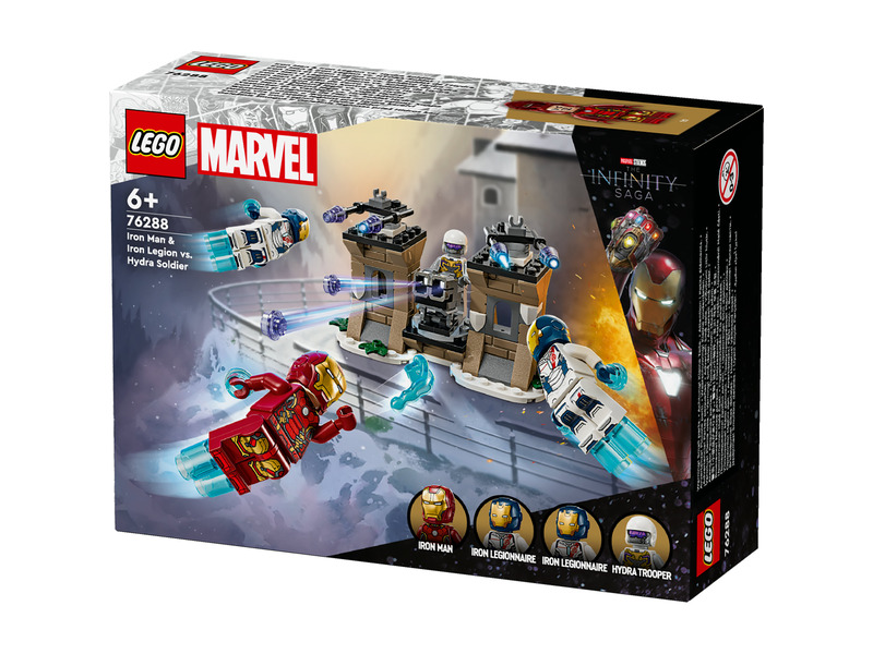 A LEGO® Marvel Vasember és a Vaslégió vs. Hydra-katona (76288) megépíthető, szuperhősös kalandjáték felidézi a Marvel Studios Bosszúállók: Ultron kora című film egyik jelenetét, amelyben a Vasember és 2 vaslégiós repül a Hydra-katona megerősített bázisára. Ez a megépíthető, szuperhősös játékszett telis-tele van vagány jellemzőkkel és kiegészítőkkel, hogy egy igazán szuper építőjáték legyen a gyerekek, főként a Bosszúállók 6+ éves rajongói számára.